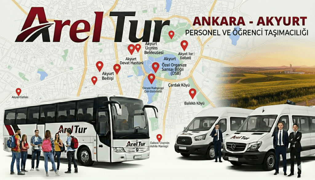 Şirketimizin geliştirdiği "Akıllı Rota Optimizasyonu" sistemleri sayesinde, yolcularımızın trafikte geçirdiği süreyi minimuma indirirken, kurumların ulaşım maliyetlerini de optimize ediyoruz. Çevre dostu ve düşük emisyonlu araç filomuzla sürdürülebilir bir gelecek vizyonu taşırken, 30 yıllık kurumsal hafızamızla Akyurt'un ulaşım yükünü profesyonel bir sürece dönüştürüyoruz. İster Akyurt Sanayi'de bir fabrikada olun, ister Esenboğa Yolu'nda bir lojistik merkez; Arel Tur sizin için en güvenli planı hazırlamaya hazırdır. Kurumsal teklif ve ücretsiz rota analizi için profesyonel ekibimizle dilediğiniz an iletişime geçebilirsiniz.
