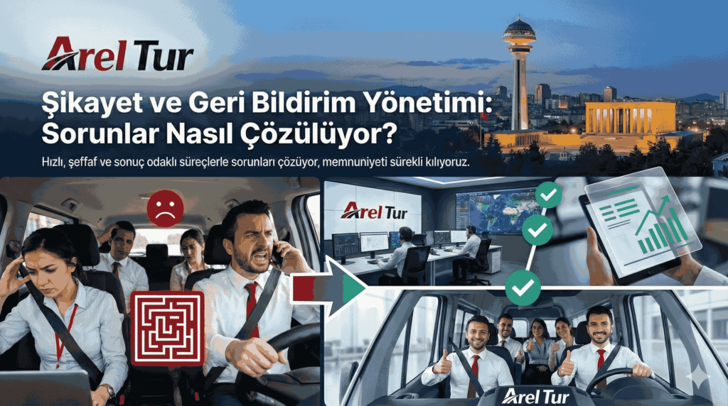 Servis sektöründe en büyük problem, şikayet iletecek bir yetkiliye ulaşamamaktır. Arel Tur olarak 30 yıllık kurumsal yapımızın temelinde ulaşılabilirlik yatar. Yenimahalle Pamuklar Mahallesi’ndeki operasyon merkezimizde görevli profesyonel müşteri temsilcilerimiz, her türlü geri bildirimi kayıt altına alarak süreci anlık olarak başlatır.